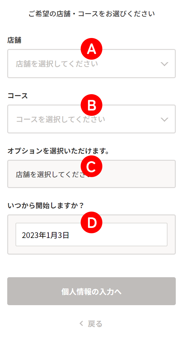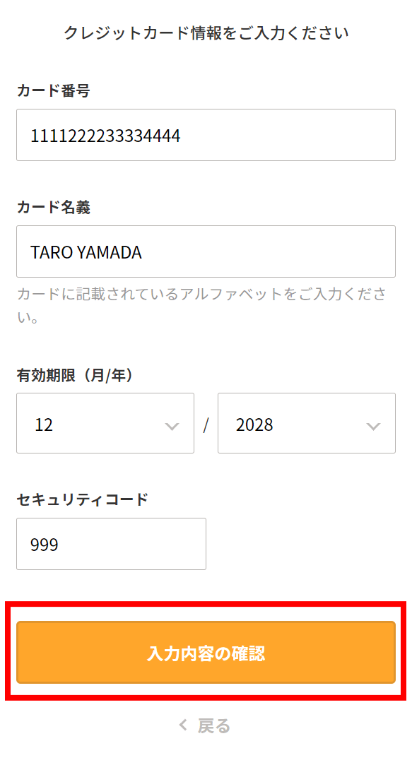 ※店舗により、クレジットカード情報の入力が無い場合もあります。